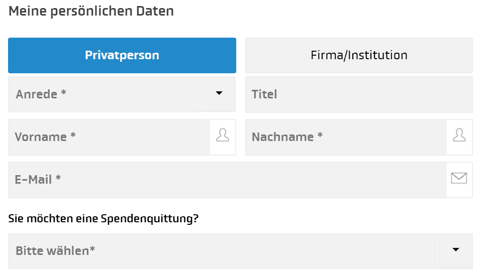 - Minimale Anzahl an Pflichtfeldern – Daten wie Anschrift, Geburtstag oder Telefonnummer sollten optional sein (praktisch sind auch intelligente Formulare, die bestimmte Felder z.B. nur dann abfragen, wenn eine Spendenquittung gewünscht ist.)